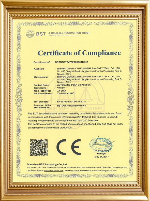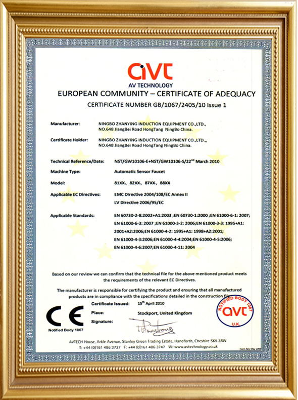 CE certificate of automatic faucet co...