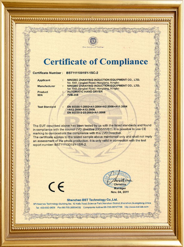 TVB-208 CE Certificate