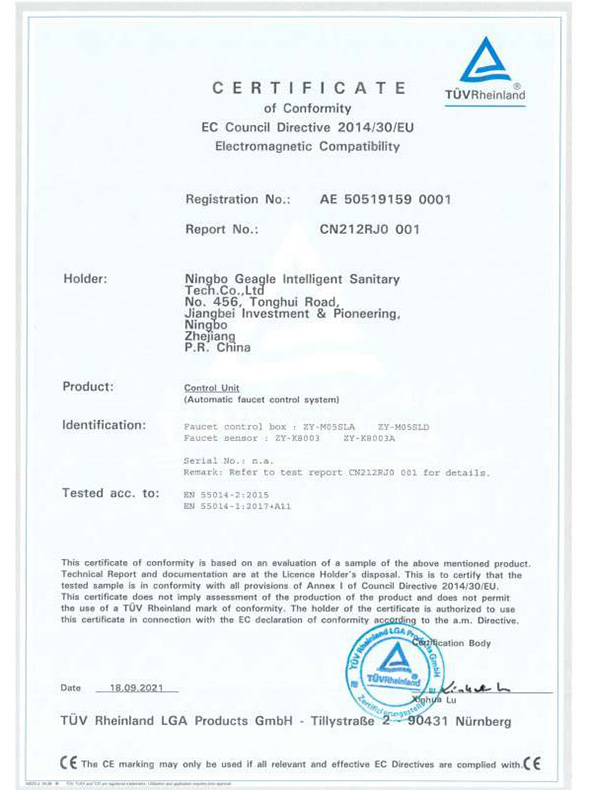 自动水龙头控制系统 CE 证书